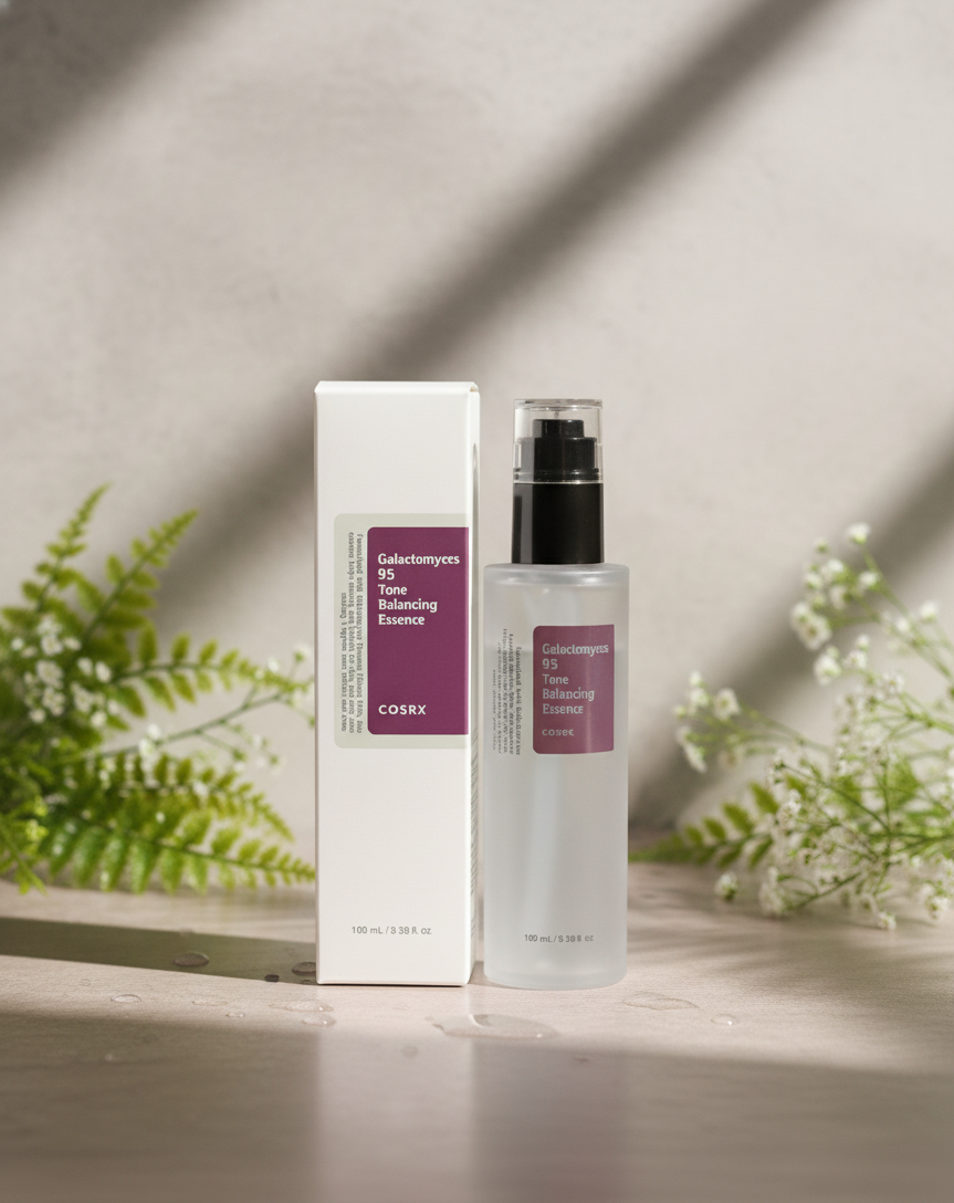 The COSRX Galactomyces 95 Tone Balancing Essence delivers powerful brightening and anti-aging benefits through its high concentration of fermented Galactomyces. This gentle formula enhances hydration, smooths fine lines, and improves overall clarity. Niacinamide, Panthenol, and Hyaluronic Acid work together to restore luminosity and refine uneven tone, leaving the complexion soft, balanced, and radiant.IMPORTED Key Responsibilities / Features (Approx. 30 words)Brightens dull, uneven skinReduces dark spots and fine linesDeep, lightweight hydrationSmooths and refines textureStrengthens skin barrierIdeal for dull, dry, or uneven skin