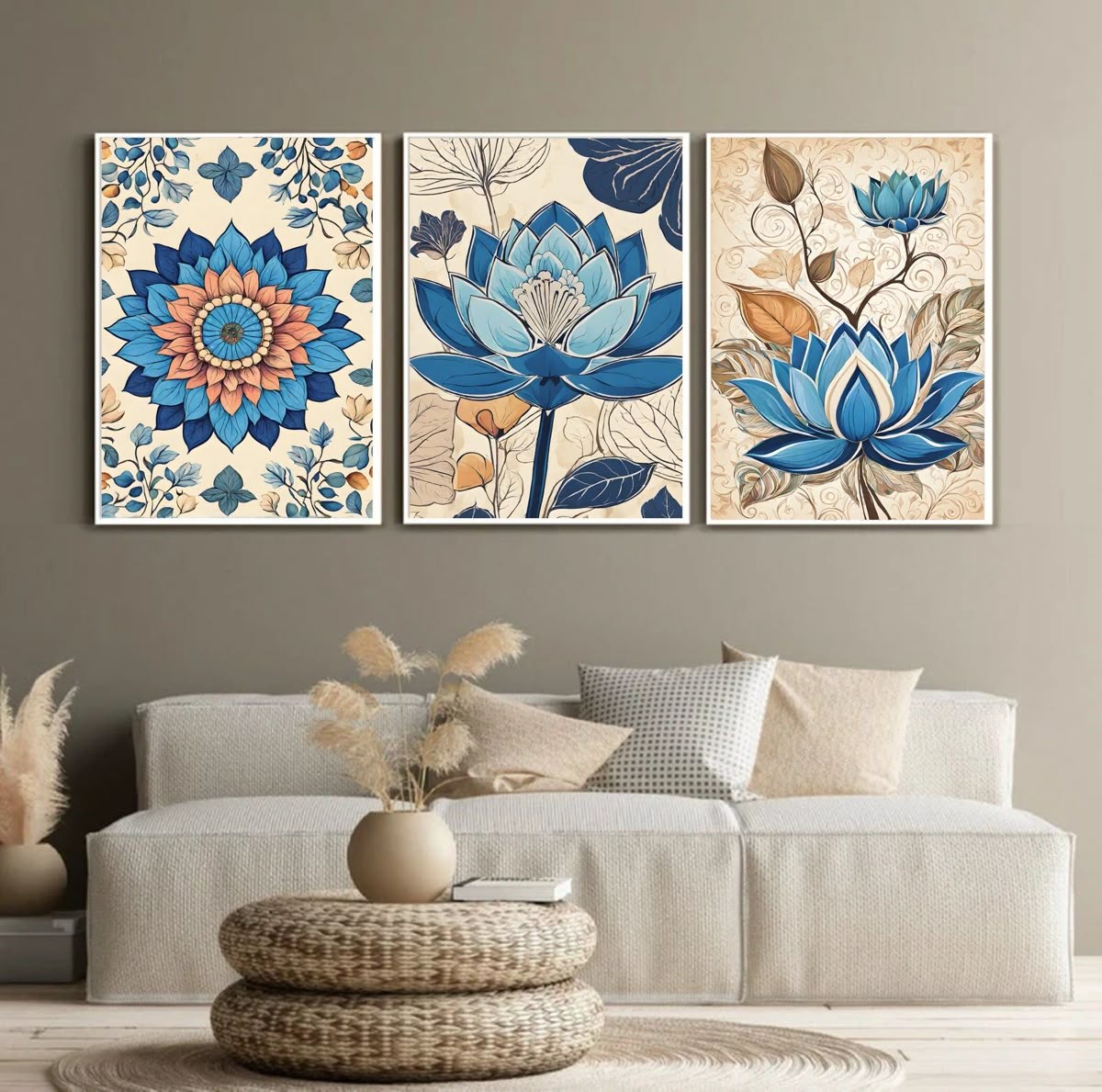 3pcs Flowers Stickytiles Frames Providing Stylish Floral Design Attractive Look Modern Appearance And Home Decoration