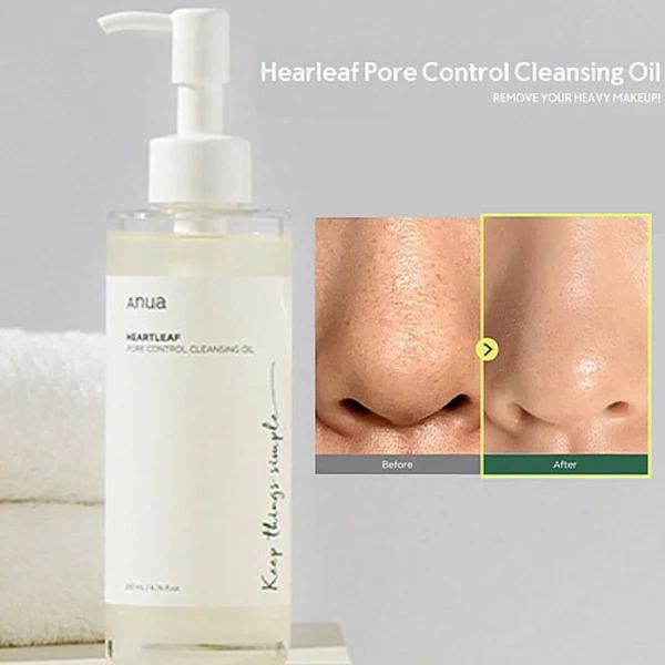 Anua Heartleaf Pore Control Cleansing Oil is an imported Korean skincare essential designed for deep cleansing without irritation. Enriched with Heartleaf (Houttuynia Cordata) extract and nourishing oils including jojoba, macadamia, olive, and sunflower seed oils, this cleansing oil effortlessly dissolves makeup, excess sebum, blackheads, and impurities while leaving skin soft and balanced.The lightweight, hypoallergenic formula is non-comedogenic and safe for sensitive and acne-prone skin, including the delicate eye area. Upon contact with water, the oil emulsifies into a milky texture for easy rinsing. For a thorough clean, it can be followed by a water-based cleanser as part of a double cleansing routine. Perfect for daily use, it keeps skin fresh, hydrated, and clear without stripping natural oils.?? Key Benefits / Features:Deep Cleansing: Removes makeup, dirt, sebum, and blackheads effectively.Gentle on Skin: Non-comedogenic, hypoallergenic, and suitable for sensitive skin.Nourishing Ingredients: Heartleaf extract + plant oils (jojoba, macadamia, olive, sunflower) hydrate and soothe.Eye-Safe: Gentle for use around the eyes.Emulsifying Oil: Turns milky when water is added for easy rinsing.Double Cleansing Compatible: Can be followed by a water-based cleanser for thorough purification.Imported Korean Skincare: Trusted formulation for effective yet gentle cleansing.