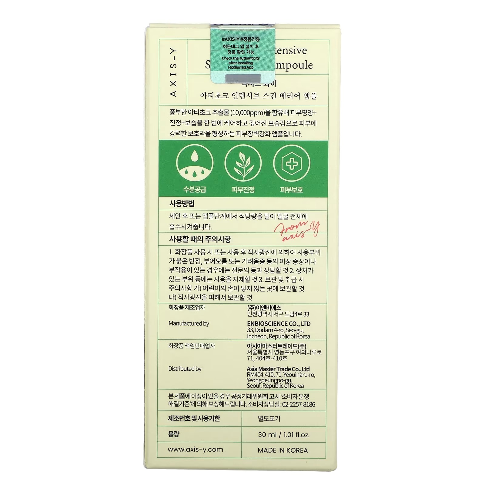 AXIS-Y Artichoke Intensive Skin Barrier Ampoule – Hydrating & Barrier-Strengthening Serum | 30ml Skin Care (Original)