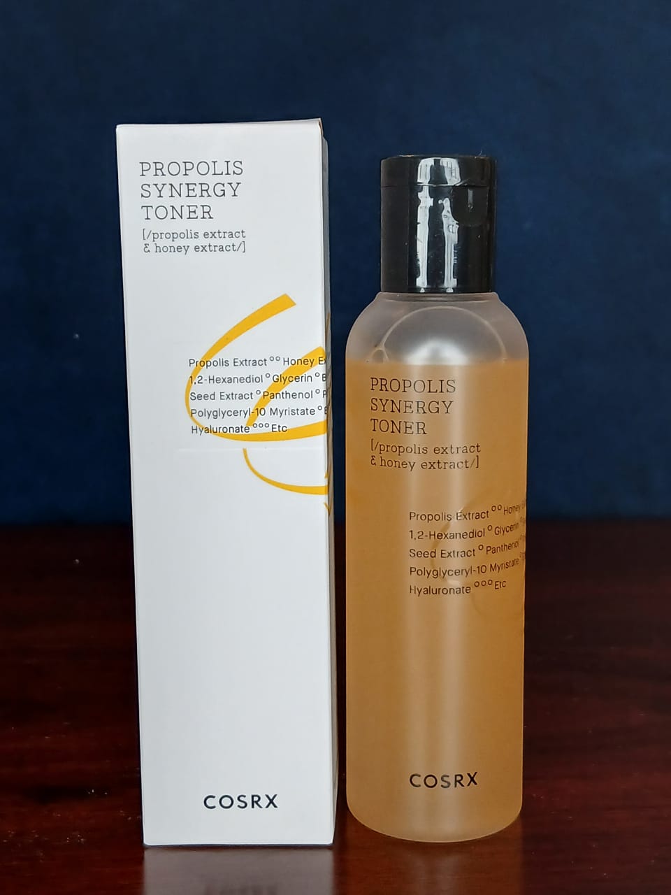 The COSRX Full Fit Propolis Synergy Toner delivers deep moisture and intensive nourishment through its high-concentration propolis and honey blend. This soothing formula reduces redness, fights inflammation, and supports acne-prone skin while strengthening the moisture barrier. With a slightly viscous but non-sticky texture, it smooths skin, enhances glow, and improves overall texture for long-lasting radiance.IMPORTEDKey Responsibilities / Features (Approx. 30 words)Deep hydration & nourishmentEnhances dewy glow and skin plumpnessAnti-inflammatory & antibacterial benefitsCalms redness and irritationSupports acne-prone skinStrengthens skin barrierLightweight, quick-absorbing formulaHypoallergenic & free from harsh additives
