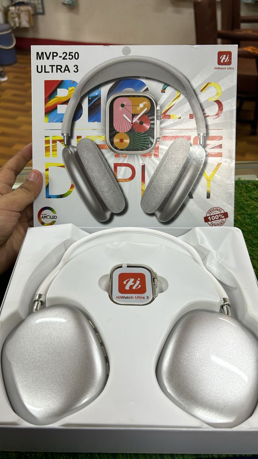 Experience the ultimate smart wearable bundle with the Hiwatch Ultra MVP-250, a stylish smartwatch from the Ultra 3 series paired with premium wireless headphones. Designed for performance and elegance, this all-in-one combo features a stunning display, high-speed performance, and seamless Bluetooth connectivity to help you stay ahead — whether you’re working out, taking calls, or managing your day.