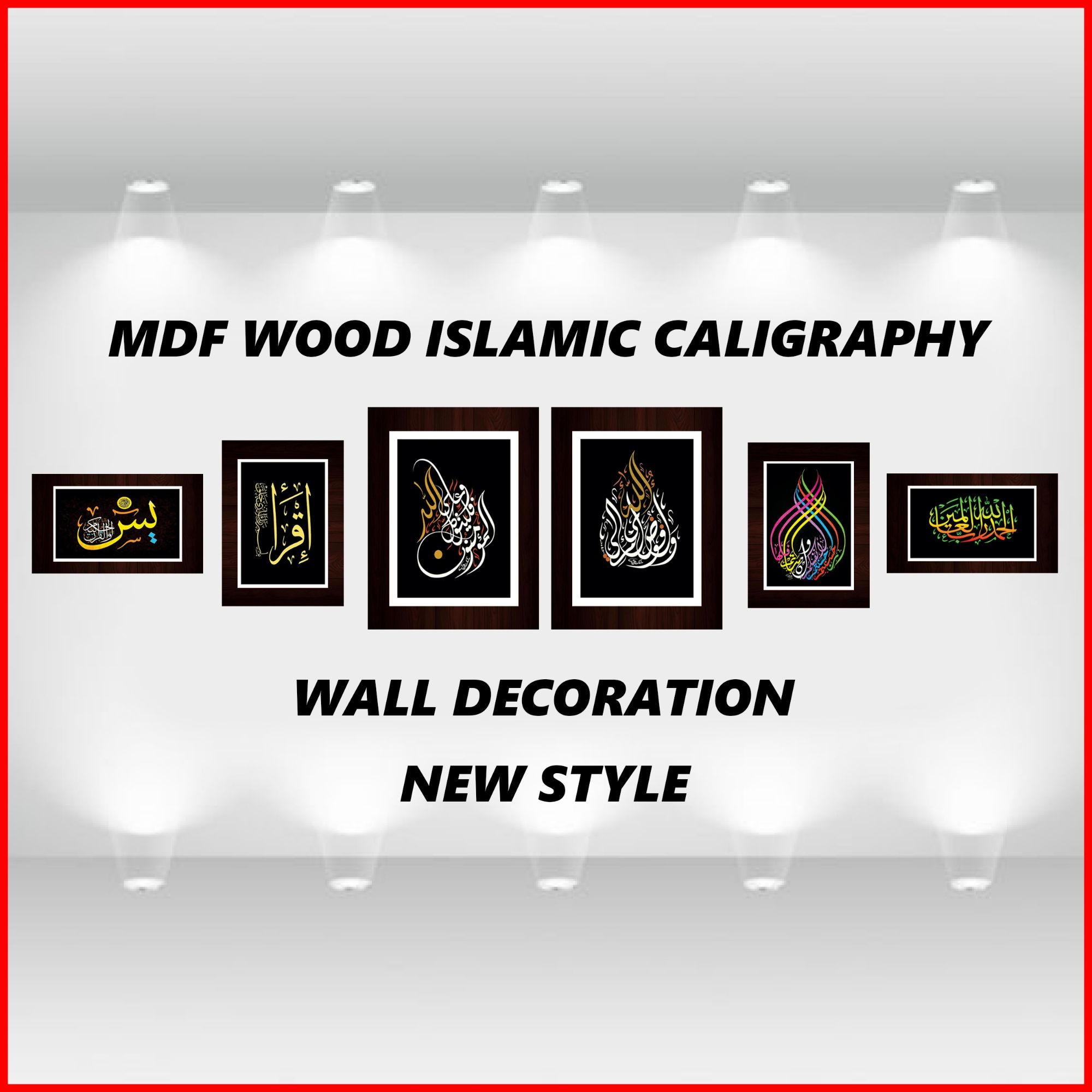 impressive Wall Decoration ( Pack of 6 ) Pure MDF Wood Islamic Calligraphy Wall Decor Pieces