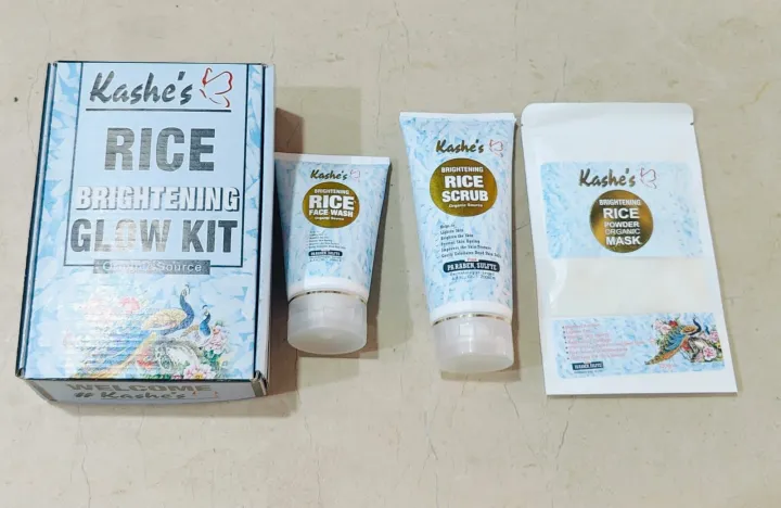 product detailsOrganic Rice Extract: Utilizes the natural brightening properties of organic rice to enhance skin radiance and even out skin tone.Comprehensive Kit: Includes a range of products designed to work together for a complete brightening skincare routine.Brightening & Hydrating: Helps to reduce dullness and restore a healthy glow while providing essential hydration to the skin.Quality CopyShasha120ml Facewash120ml Scrub150ml