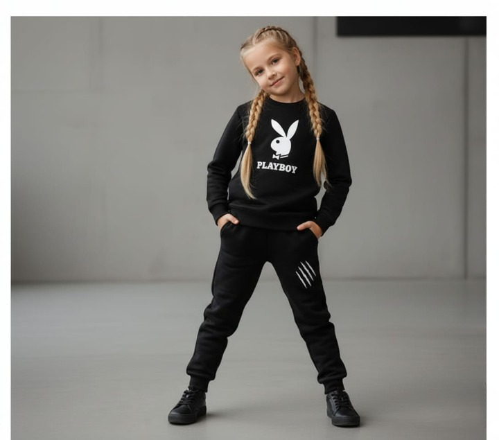Keep your little one warm and stylish with the Kids PLAYBOY Printed Black & Black Tracksuit Set. Made from premium quality fleece, this 2-piece winter outfit includes a cozy sweatshirt and matching trouser that provide superior comfort and insulation. The PLAYBOY printed design adds a fashionable edge, perfect for trendy boys and girls. Ideal for school, casual wear, or outdoor play, this tracksuit keeps your kids comfortable, confident, and fashion-forward all season long.? Key Features:?? PLAYBOY Printed Design ? bold and stylish look for kids?? 2-Piece Set: Sweatshirt + Trouser?? Warm Fleece Fabric ? soft, breathable & winter-ready???? Unisex Style ? suitable for both boys and girls?? Durable Stitching & High-Quality Finish?? Perfect for School, Home, or Outdoor Activities?? Ideal Winter Gift for KidsKids Suit Size S3M?9MM10M?2YrL2Yr?3.5YrXL3.5Yr?5Yr2XL5Yr?7Yr3XL7Yr?9Yr.