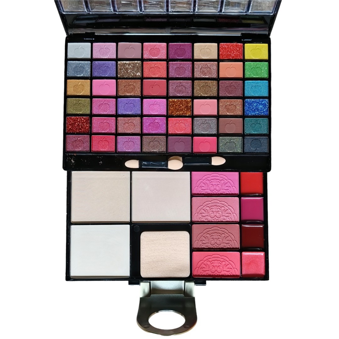 Discover the ultimate beauty companion with the Kiss Touch (No. K9136) Makeup Kit. This elegantly designed, travel-friendly case opens to reveal a world of color, curated for makeup enthusiasts and professionals alike.The palette is divided into specialized sections to streamline your routine:Eyeshadows: A wide array of matte and shimmer shades ranging from cool blues and greens to warm earth tones.Complexion: Includes finely milled compact powders for a flawless finish and pigmented blushers to add a healthy glow.Lip Palette: A selection of creamy lip shades to complement any eye look.Formulated with ingredients like mica and kaolin for smooth blendability, this kit ensures a long-lasting and comfortable wear. Whether you are at home or on the go, the Kiss Touch kit provides all the essentials in one sleek, floral-embossed compact.