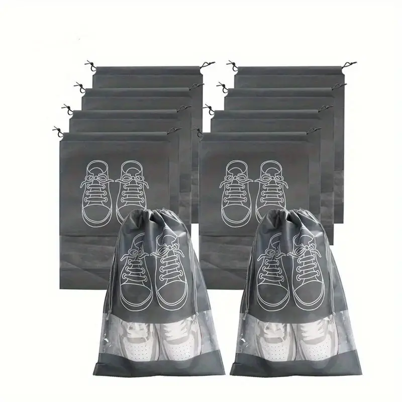 Pack of 01 – Shoe Bag for Travel & Home Storage – Dustproof Printed Shoe Organizer Pouch in Random Gray – Lightweight, Breathable, and Reusable Shoe Cover for Luggage, Closet, or Gym Use – Grey Color