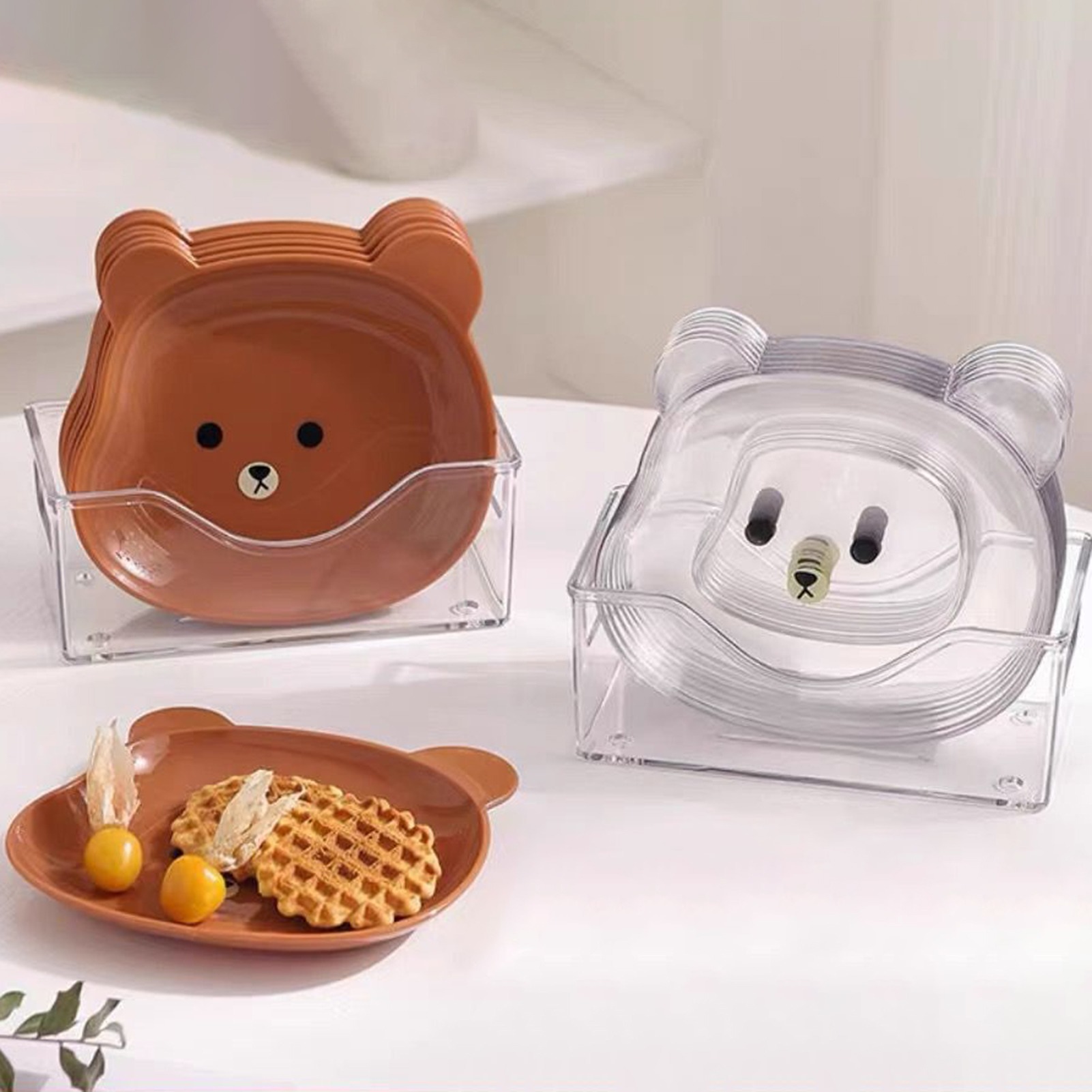 8 Plates With Stand Bear Design Durable Quality Stylish Look Reliable Utility Perfect Choice For Daily Use (Random Color)