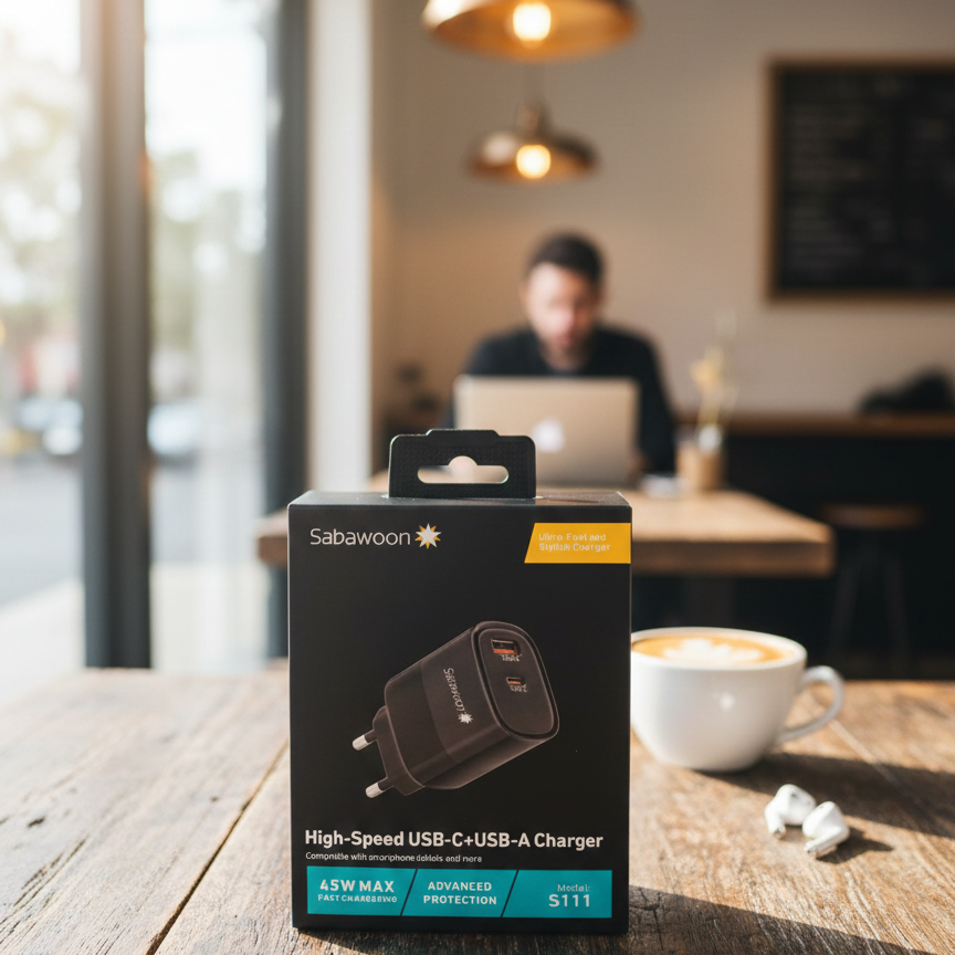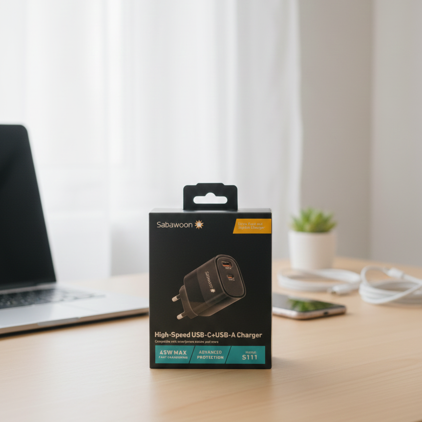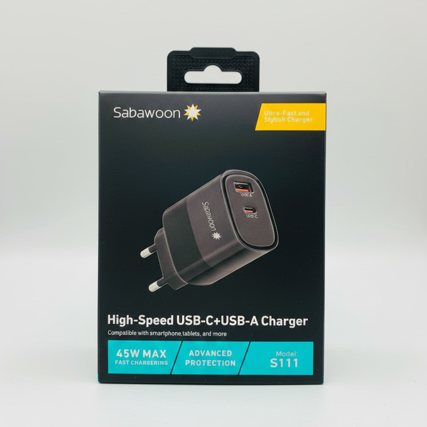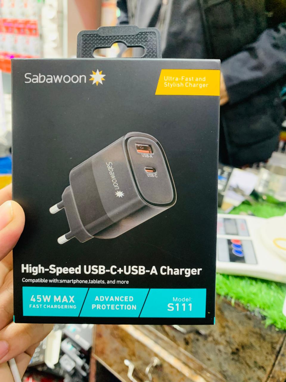 The Sabawoon S111 Original Adopter is designed to deliver USB fast charging and PD super fast charging for modern devices. Built with 100% original quality, it ensures safe and efficient power delivery. This model comes without cable, making it ideal for users who already have compatible charging cords. Compact and durable, the S111 adaptor is perfect for everyday use at home, office, or while traveling, providing reliable performance and quick charging whenever needed.Key PointsModel S111 original adopterUSB fast charging supportPD super fast chargingWithout cable (adaptor only)