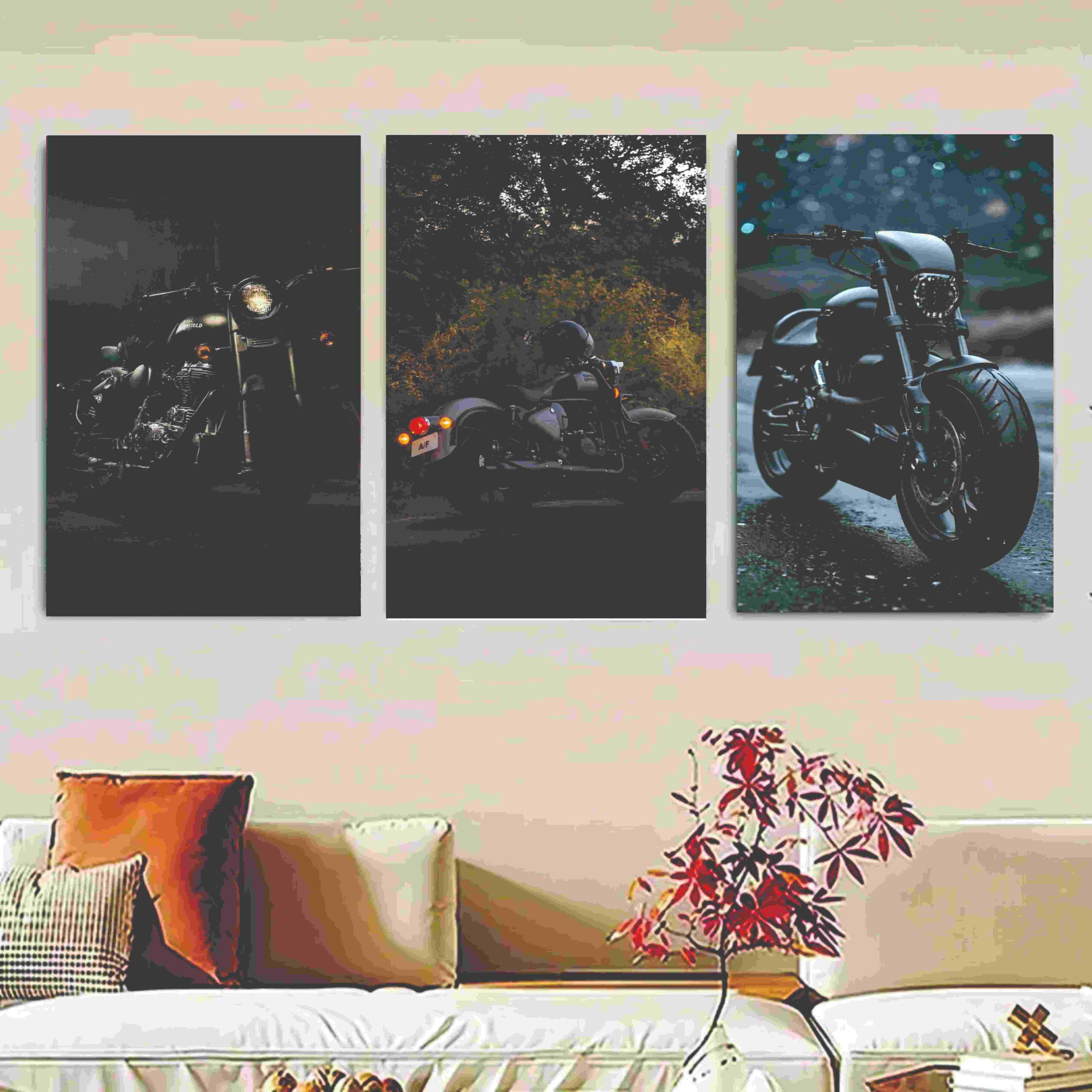 Set Of 3 bikes Sticky Canvas Frames For Wall Decore / Sticky Phototiles