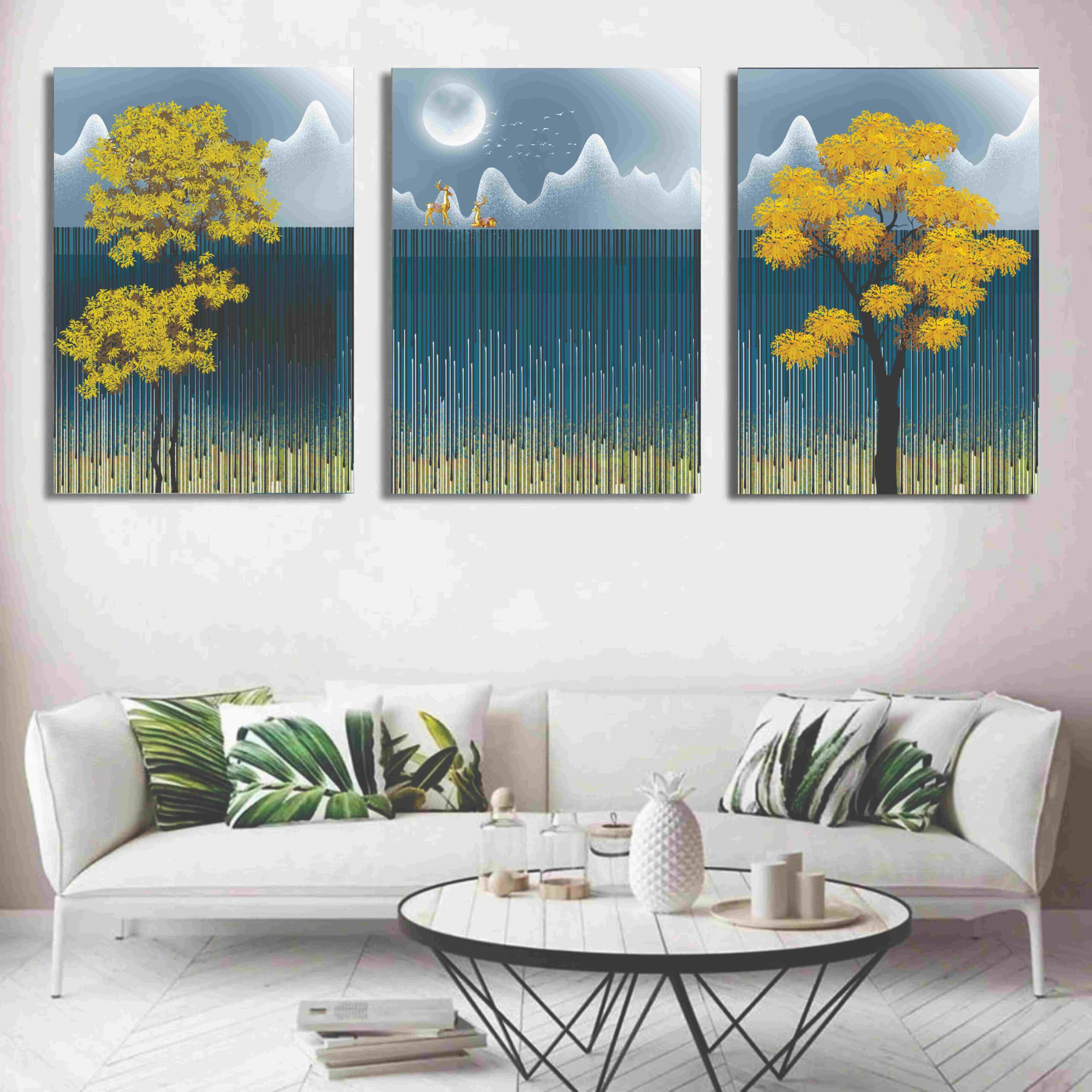 No Of Frames : 3 Size : 8×11 inches each Frame Material : high quality mdf wooden Sticky Tape Attached at the back for sticking on wall Beautiful Designs Which will give your interior a spiritual vibe