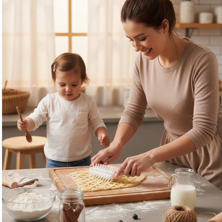 The Pizza Dough Docker Roller is a professional baking tool designed to ensure smooth, even dough every time. By creating small holes across the surface, it prevents air bubbles and helps dough bake evenly—perfect for pizzas, pastries, pie crusts, cookies, and bread. Made from high-quality, food-grade materials, this roller is durable, lightweight, and easy to clean. Its comfortable handle offers a secure grip, making dough preparation faster and more efficient. Whether you’re a home baker or a professional chef, this docking tool delivers perfectly textured dough with consistent results.✅ Key Responsibilities Prevents dough bubbles for smooth, even bakingCreates perfect holes quickly and effortlesslyIdeal for pizza, pastry, cookies, and breadFood-grade, durable, and easy to cleanComfortable non-slip handle for better controlSuitable for home and commercial baking