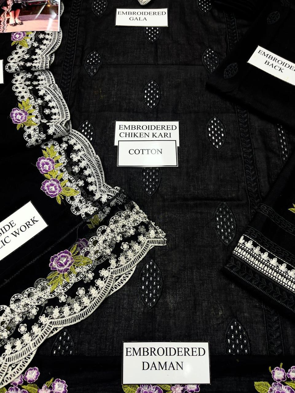 Discover the exquisite ZARQASH CHIKENKARI Exclusive Collection, featuring a stunning black lawn schiffli embroidered suit. This luxurious ensemble showcases intricate multi-thread work on the daman, complemented by a separately given neck lace. The sleeves are adorned with schiffli embroidery and fabric cuffs, while the back boasts elegant chikankari embroidery. The outfit is completed with a beautiful chiffon embroidered dupatta featuring a 4-side embroidered applique work and a dyed lawn trouser. This black embroidered suit is perfect for any occasion, offering a blend of traditional craftsmanship and contemporary style. Shop this exclusive ZARQASH collection and elevate your wardrobe with its premium quality and intricate designs. The detailed embroidery on the daman, sleeves, and dupatta, along with the classic chikankari back, makes this a standout piece. The inclusion of a chiffon dupatta adds an ethereal touch, making it ideal for festive events and formal gatherings. Available at wholesale price, this black chikankari suit is a testament to fine Pakistani ethnic wear. Embrace the elegance of ZARQASH with this meticulously crafted ensemble. The contrasting embroidery against the deep black fabric creates a captivating visual appeal, making it a must-have for fashion connoisseurs. Experience the artistry of chikankari and schiffli embroidery in one breathtaking outfit. The accompanying dupatta is a work of art in itself, with delicate embroidery and appliqué that frames the fabric beautifully. The plain dyed lawn trouser ensures comfort and versatility, allowing the embroidered details of the shirt and dupatta to take center stage. This ZARQASH collection promises unparalleled style and quality, making it a worthy addition to your ethnic wear collection. Perfect for weddings, parties, or special occasions, this black embroidered suit will make you the center of attention. Don’t miss out on this exclusive opportunity to own a piece from the renowned ZARQASH CHIKENKARI brand. The delicate pearl details on the daman, provided separately, add a touch of refined elegance. The combination of lawn schiffli and chikankari embroidery offers a unique texture and depth to the garment. The chiffon dupatta’s 4-side embroidered applique work is a highlight, adding a luxurious finish. This ensemble is a true celebration of Pakistani craftsmanship and design, offering timeless appeal and sophisticated charm. The deep black hue signifies elegance and versatility, making it suitable for a wide range of events. The quality of the fabric and the precision of the embroidery are evident in every detail of this ZARQASH creation. Get ready to make a statement with this impeccably designed chikankari suit.